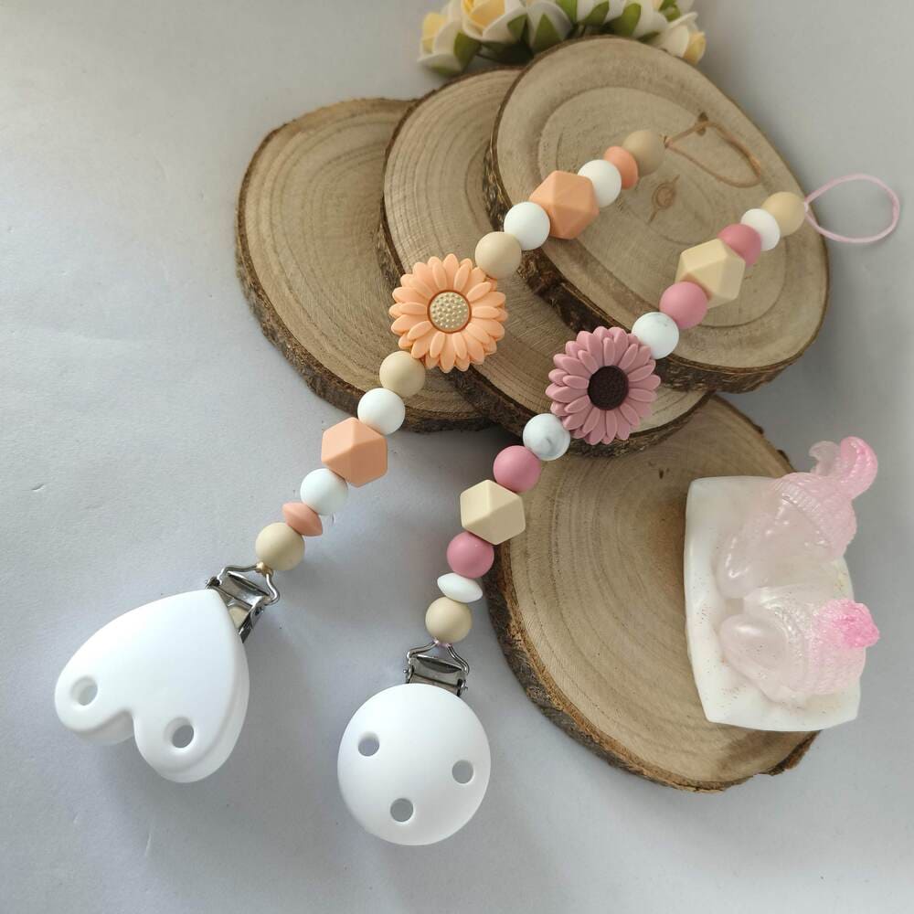Mes attache tétine Flower personnalisé est le choix idéal pour les parents en quête d'un accessoire à la fois pratique, élégant et sécurisé pour leur bébé. perles en silicone sans prénom.