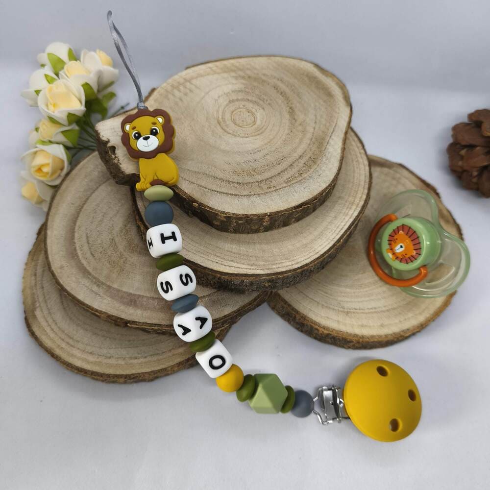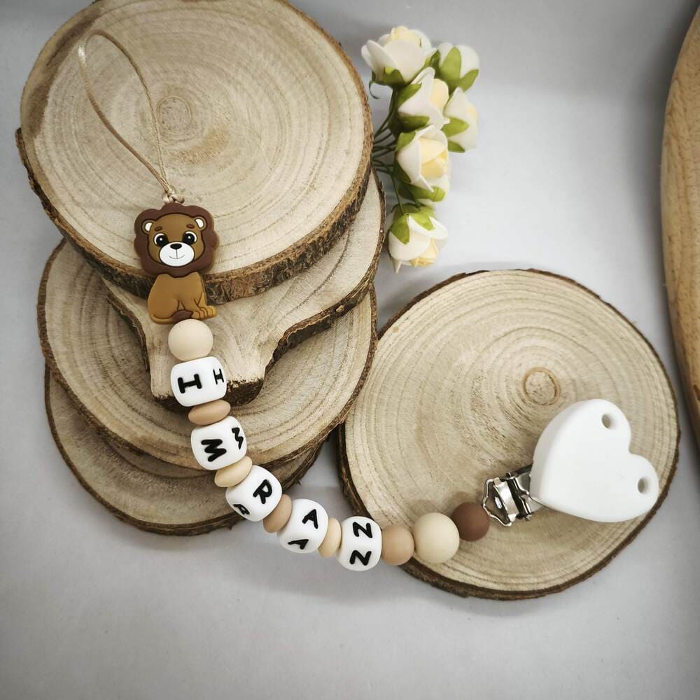 Notre attache tétine lion personnalisé est le choix idéal pour les parents en quête d'un accessoire à la fois pratique, élégant et sécurisé pour leur bébé.