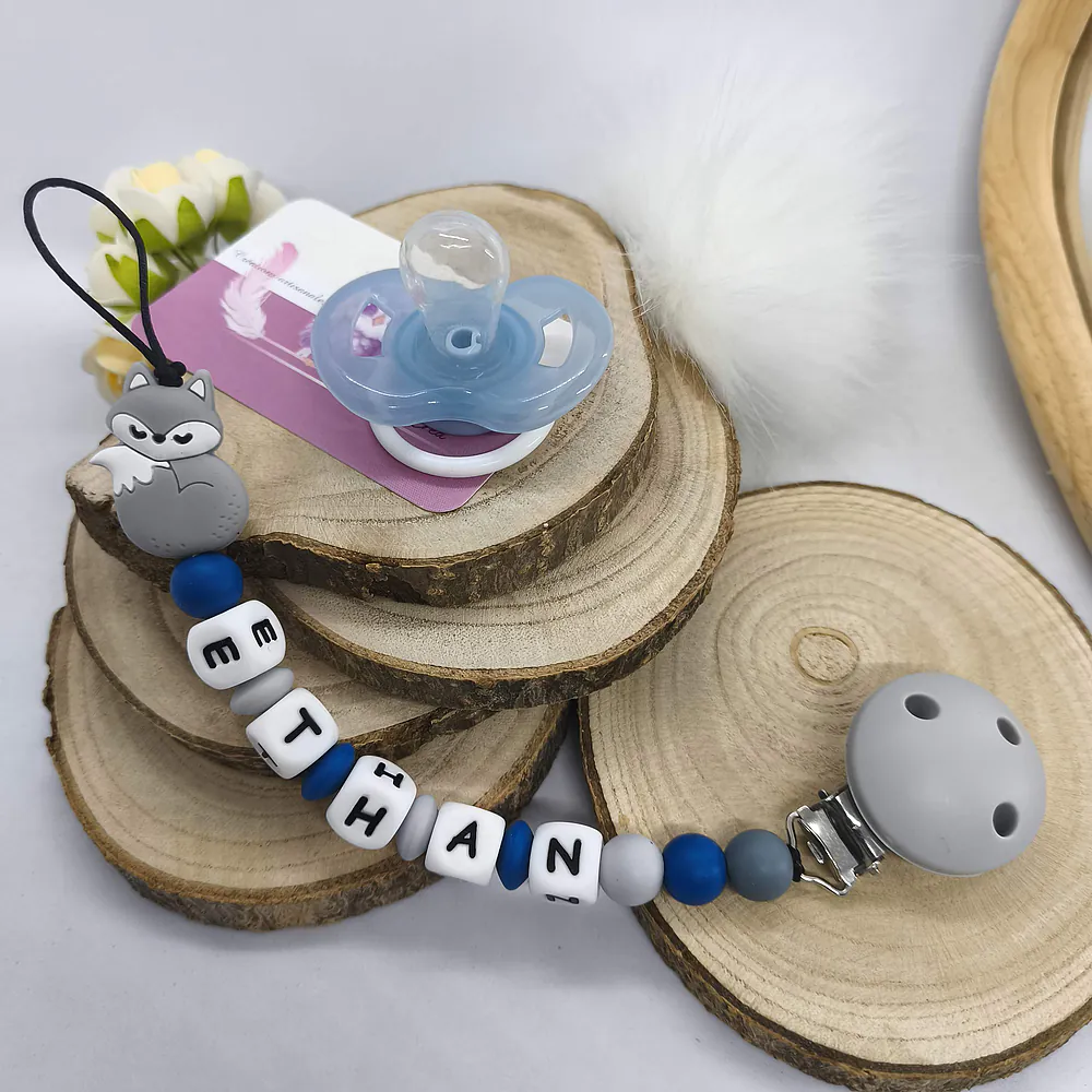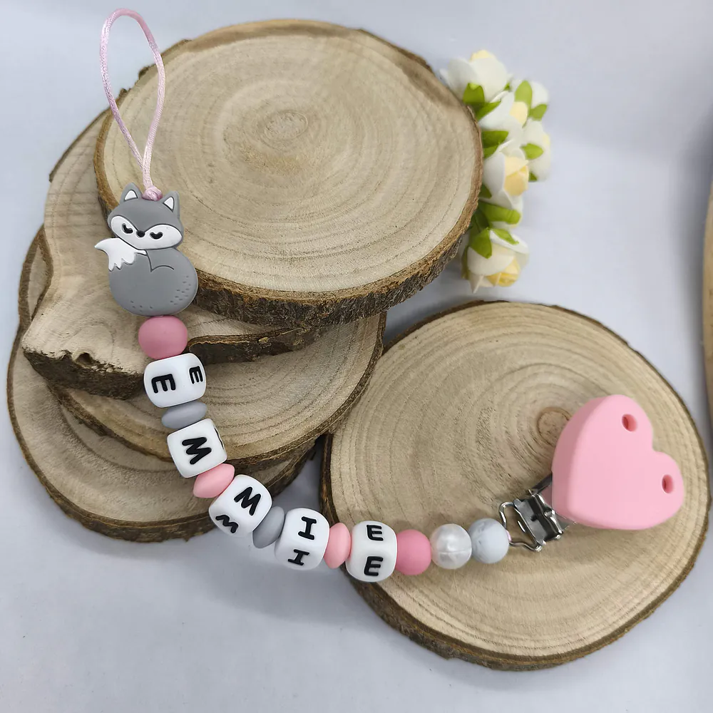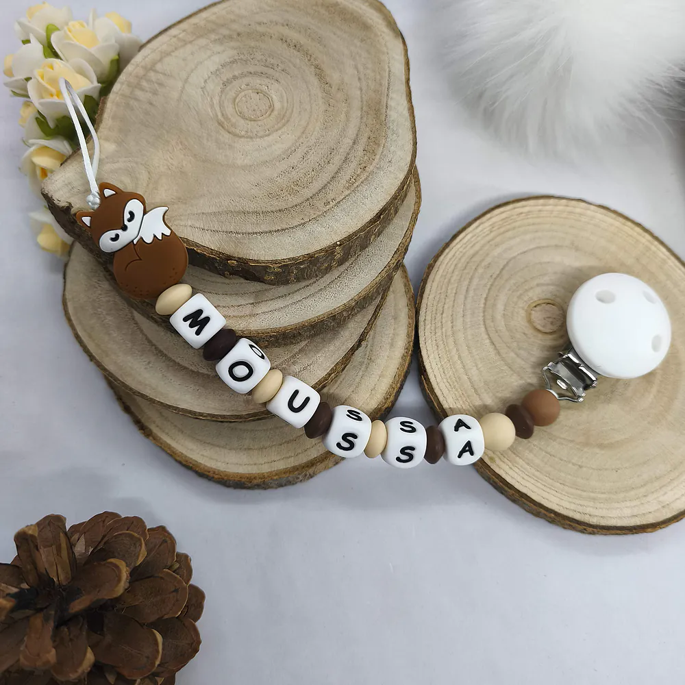 Attache tétine renard dormeur personnalisée – plusieurs coloris