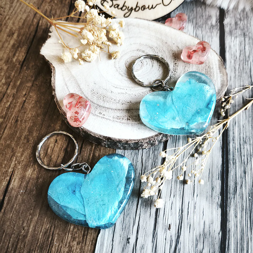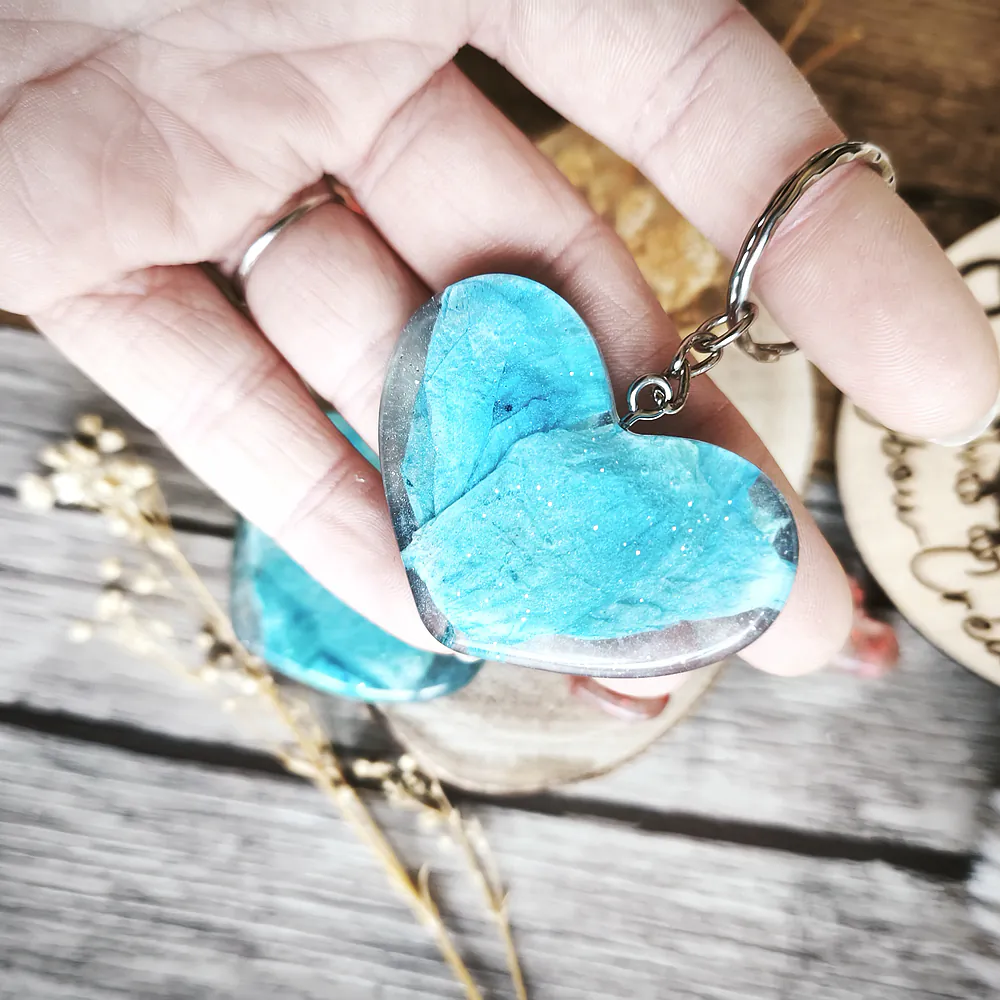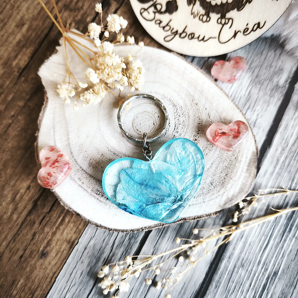 Porte-clé gros coeur en résine époxy – Cœur Bleu Orchidée