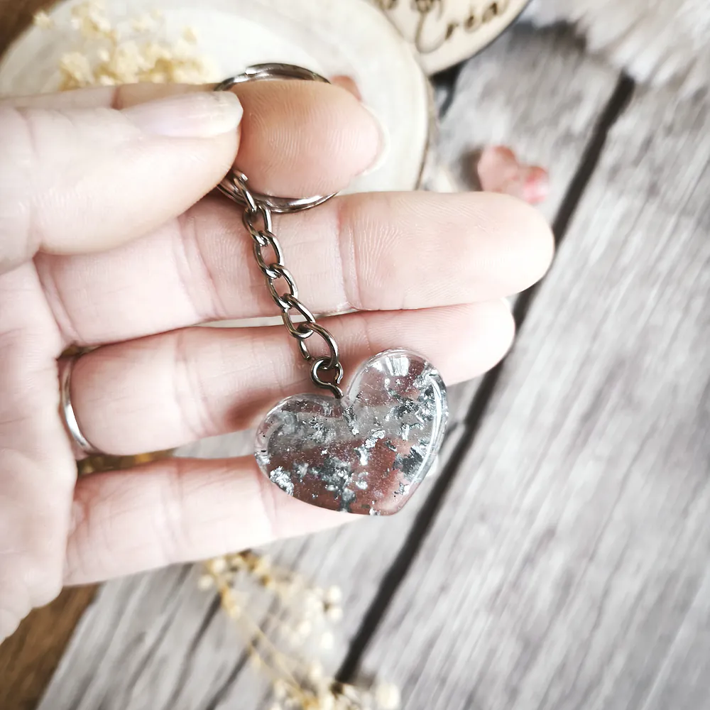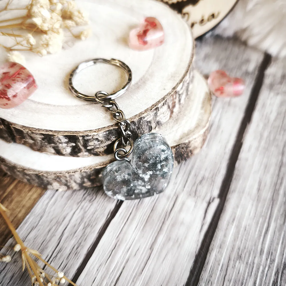 Porte-clé Petit Cœur en Résine Époxy – Brume Argentée