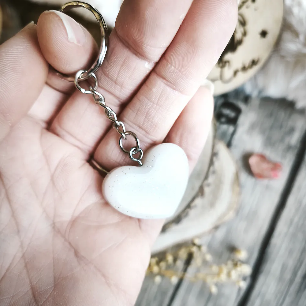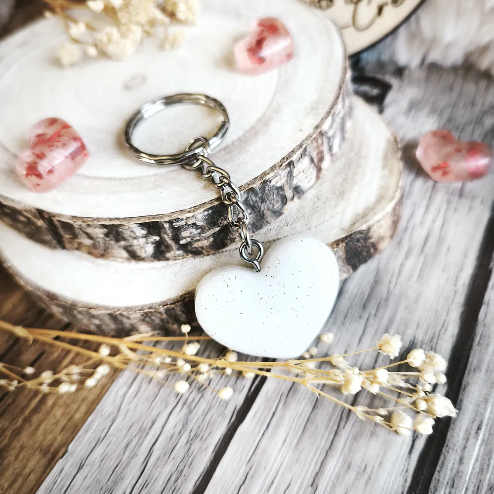 Porte-clé Petit Cœur en Résine Époxy – Paradis Blanc