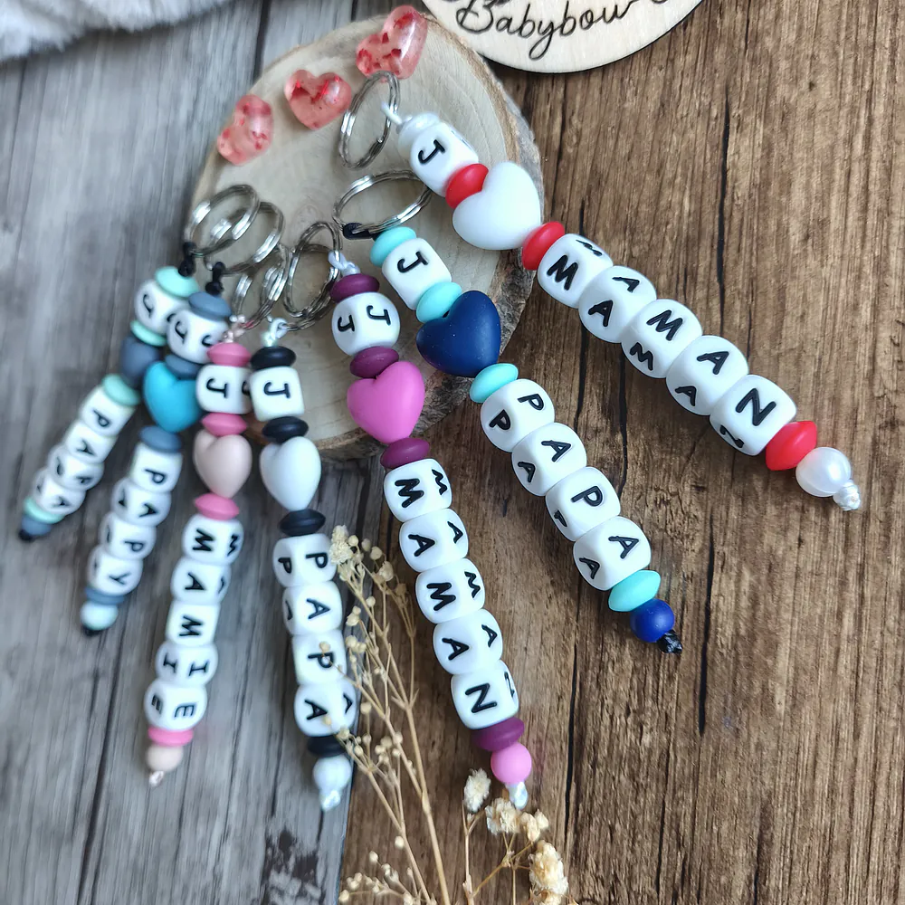 Personnalisation : Vous pouvez choisir un prénom ou un mot à intégrer dans le porte-clé, accompagné d’un joli cœur pour une touche d’amour et de douceur.