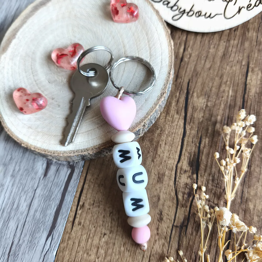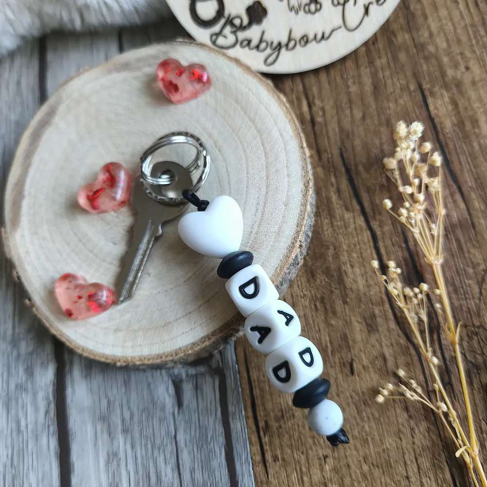 Offrez un accessoire fait main et personnalisé pour un anniversaire, la fête des mères, la fête des pères, ou pour compléter un cadeau de naissance destiné à la maman ou au papa. Ce porte-clés est soigneusement préparé pour être offert et faire sourire vos proches.